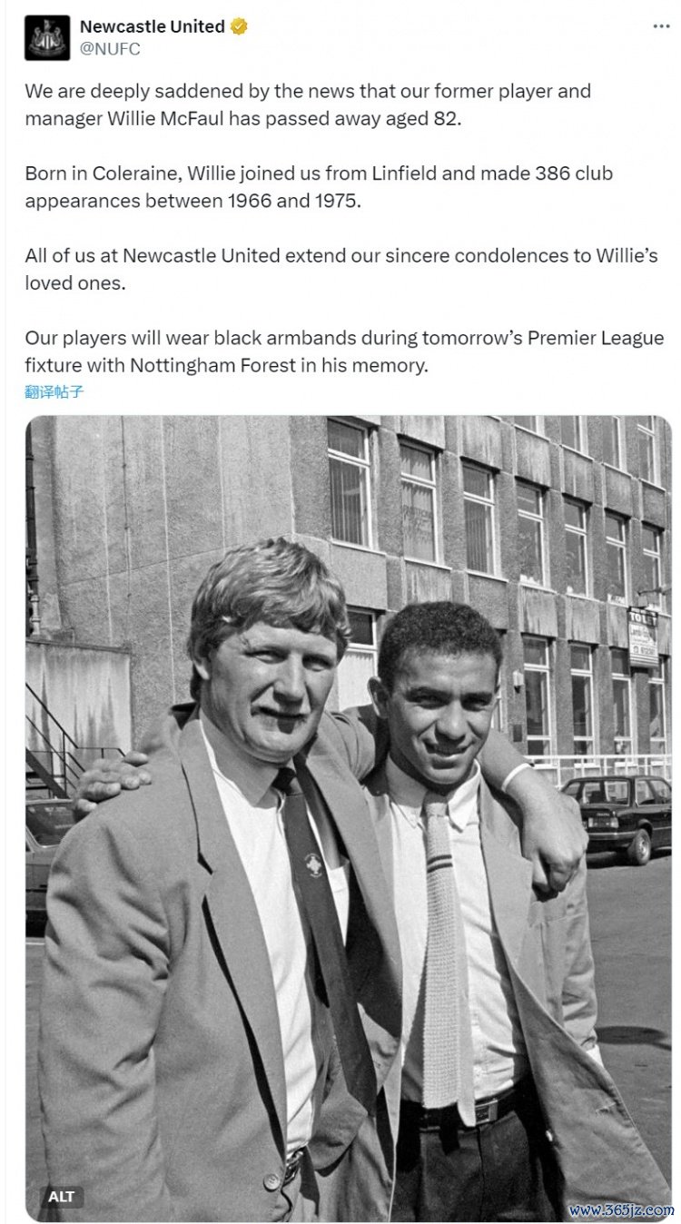 纽卡官方社媒写谈:“咱们深感缅怀地获悉,俱乐部前球员、教化威利-麦克福尔亏蚀,享年82岁。威利出身于科尔雷恩,从林菲尔德转会加盟咱们,1966年至1975年间共为俱乐部出场386次。