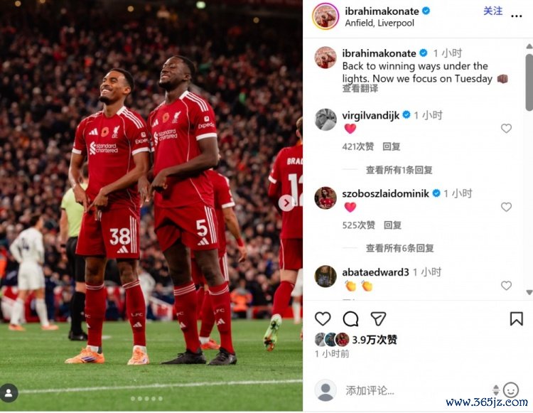 利物浦后卫科纳特赛后也在社媒晒出与进球元勋赫拉芬贝赫的合照,配文写谈:“在聚光灯下从头回到得胜轨谈,当今专注于周中的欧冠。”
