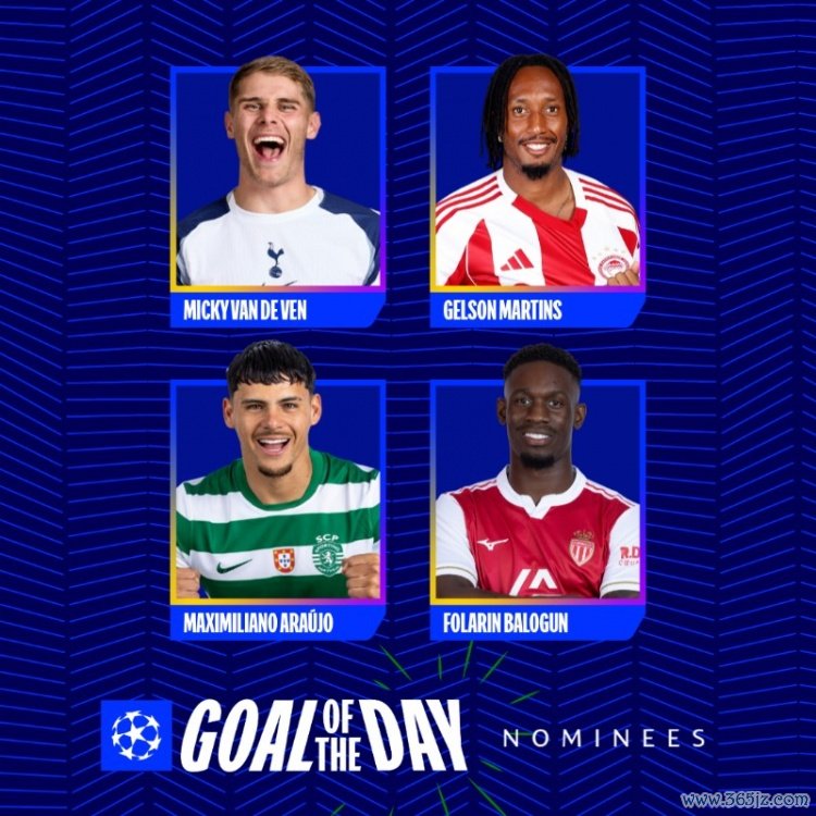 11月5日讯 本日9场欧冠比赛战罢,欧冠官方列出了最好进球候选名单。