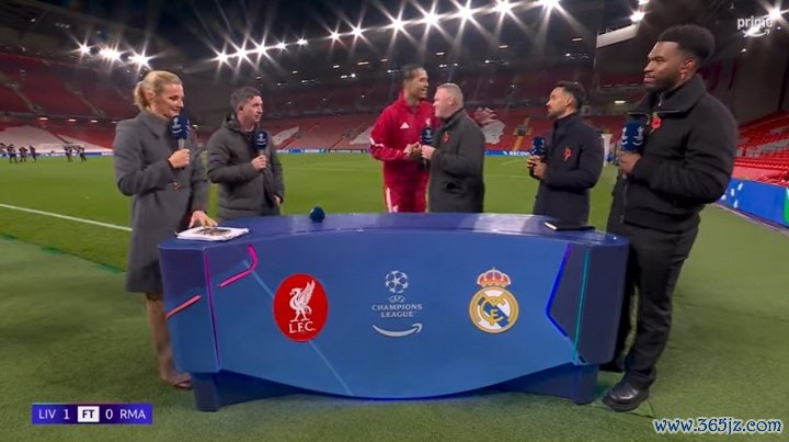 赛后,利物浦队长范戴克在场边袭取了媒体TNT的瞬采,与鲁尼、沃尔科特殊指摘员聊了一霎。