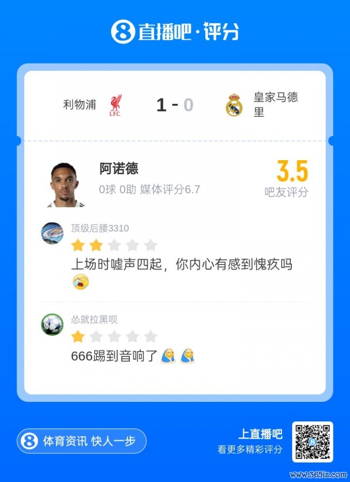 本场比赛,出生于利物浦青训,今夏加盟皇马的阿诺德于第81分钟替补登场,但并未变调比赛走势,范戴克疏通的利物浦最终依然在主场获得了告捷。