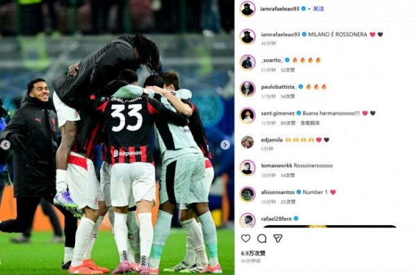 11月24日讯 米兰在本轮意甲焦点战迎来同城德比,最终在客场1-0力克国米。 莱奥本场客串中锋数据并不亮眼,未能完成射门、1次过东说念主并未得手,所有仅23次触球+3次突围,8次抵御仅得手2次,但他在前场的不懈跑动也在很猛进度上匡助了球队。 他也在赛后通过社媒晒出我方和队友们相拥庆祝的像片,并配文:“米兰城是红玄色的!”......