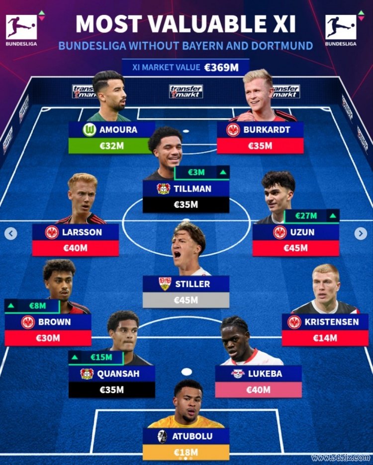 德甲除拜仁多特外身价最高阵:法鹰5东谈主药厂2东谈主,斯蒂勒卢克巴在列