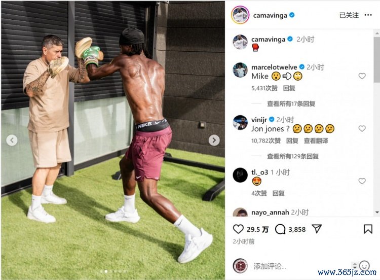 10月29日讯 皇马中场卡马文加更新社媒动态,晒出训诫拳击的相片。