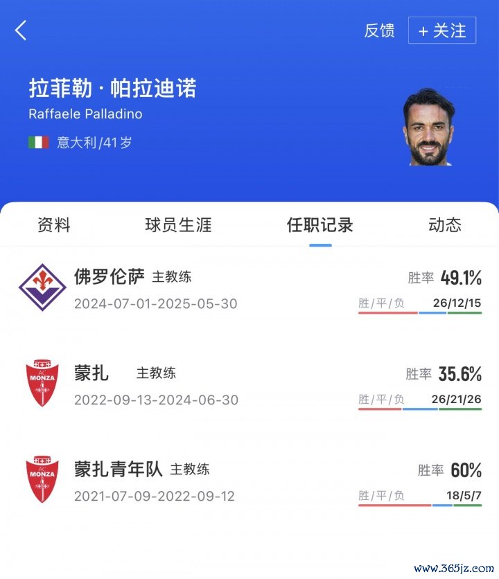 帕拉迪诺的抓教活命起步于蒙扎,上赛季他担任佛罗伦萨主帅,本年5月一度与球队续约。但5月底佛罗伦萨晓喻帕拉迪诺离任,意媒称帕拉迪诺觉得我方未获取球迷招供,因而接管离职。