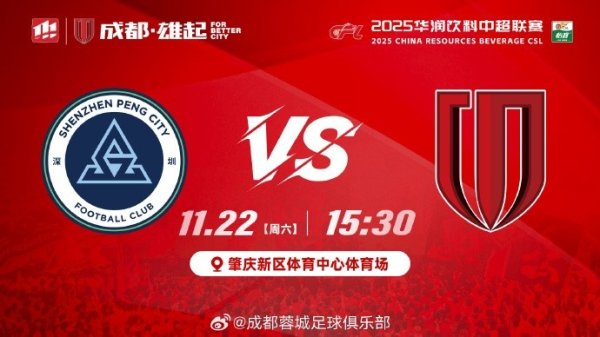 比赛日 2025华润饮料中超联赛 第30轮 ⚽ 深圳新鹏城 vs 成皆蓉城 📅 11月22日(周六)15:30 🥅 肇庆新区体育中心绽放场 📺 成皆市播送电视台群众频说念、@咪咕视频 APP、转移高清、咪视界、@咪咕音乐 致意通盘远征军和屏幕前守旧蓉城的球迷家东说念主们!成皆,雄起!......