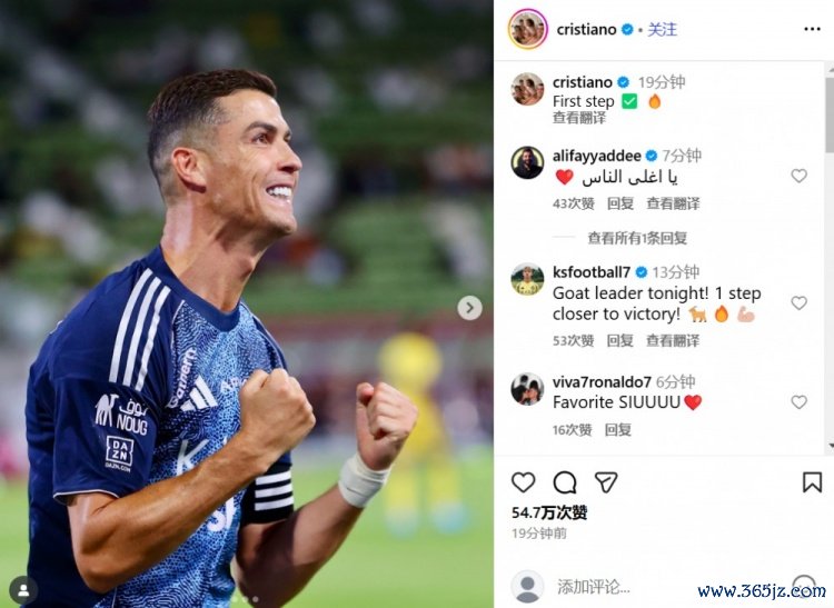 5-0大捷布赖代配合,C罗社媒晒照庆祝告捷:走出第一步