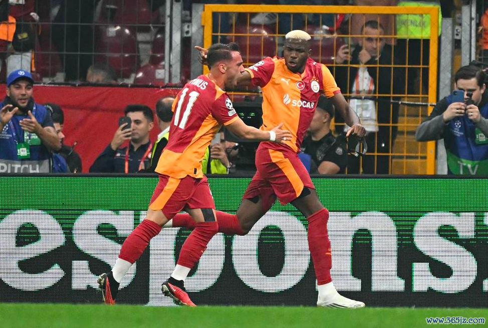 奥斯梅恩操刀主罚,跋扈射向中路,加拉塔萨雷得回擢升。