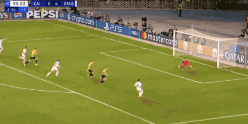 第52分钟,库尔图瓦大脚开球,姆巴佩斜线超车,甩开后卫,单刀破门。姆巴佩也成为皇骑兵史首位包揽单赛季欧冠前3个进球的球员,创造记载。
