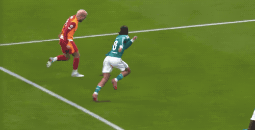 第14分钟,伊尔马兹突入禁区,索博斯洛伊先是用左手击中伊尔马兹的面部,接着右手又打在对方的脸上,裁判果决判罚点球。