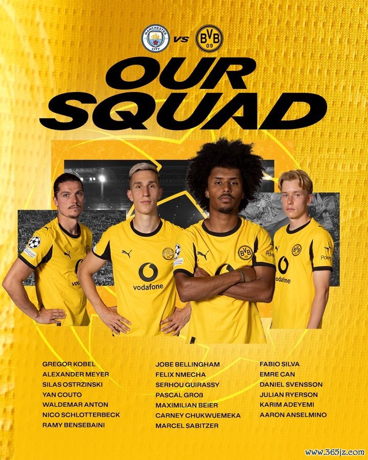 11月5日讯 北京时间本周四凌晨4点,欧冠联赛阶段第4轮,多特将客战曼城,多特本日公布了球队此役大名单。