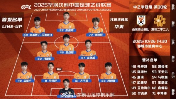 2025年中乙联赛第30轮争冠组山东泰山B队主场深圳二零二八队首发威望 💪💪💪......