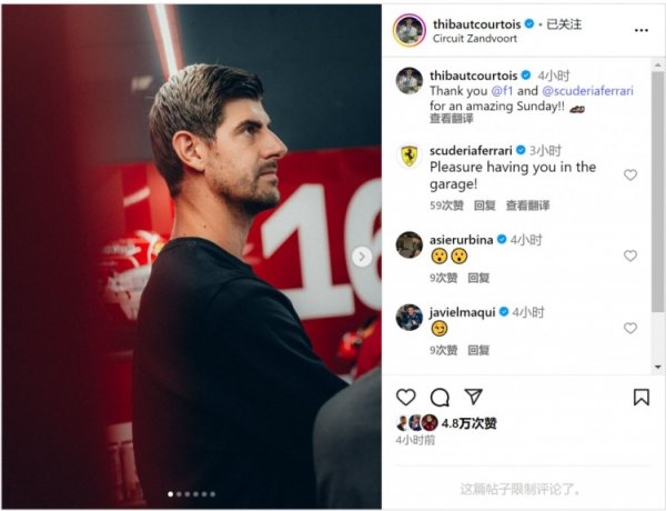 9月2日讯 皇马门将库尔图瓦更新社媒动态,晒出拜谒法拉利车队的像片。 库尔图瓦受邀现场不雅看F1荷兰大奖赛,并拜谒法拉利车队,他在酬酢媒体上晒出像片,配文:“感谢F1和法拉利车队让我渡过一个巧妙的周日。”......