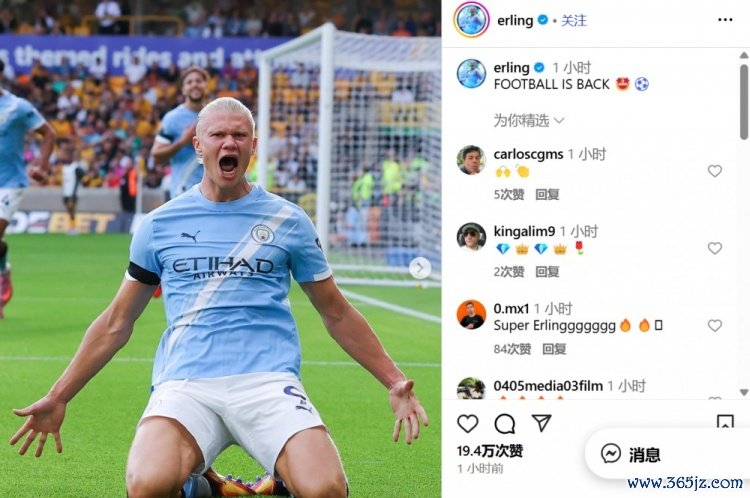 8月17日讯 在曼城4-0打败狼队获取英超开门红后,哈兰德更新了外交媒体。