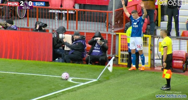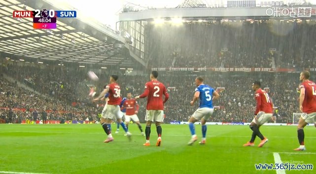 暴风+暴雨!老特拉福德场内的角旗杆快被风吹倒了