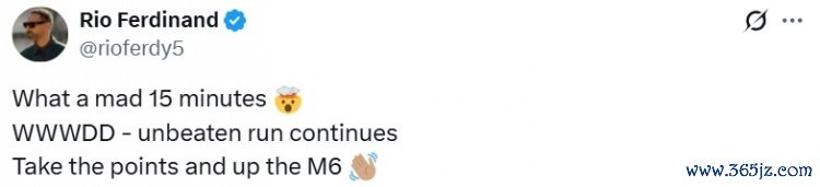 曼联名宿费迪南德在社媒发文驳斥谈:“猖獗的15分钟,3胜2平,曼联的不败持续。收下分数并争取持续至第6场。”
