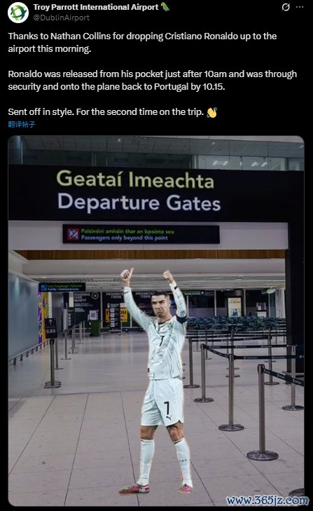 主场2-0葡萄牙赛后:“感谢科林斯送C罗去机场,他刚上飞机👋”