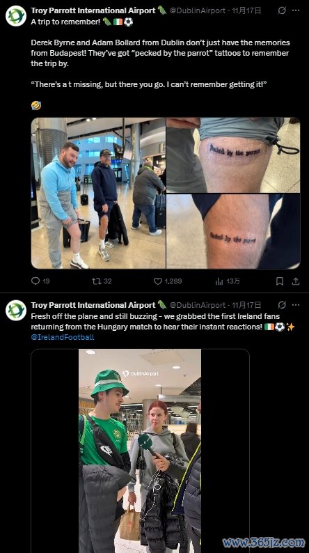 在爱尔兰临了3轮全胜,晋级附加赛的经过中,临了两场独进5球的时尚帕洛特无疑是最大元勋。对此,扩充国度队来迎去送任务的爱尔兰齐柏林机场开玩笑地将官方社媒称呼改为“特洛伊·帕洛特机场”,并连发多条动态庆祝: