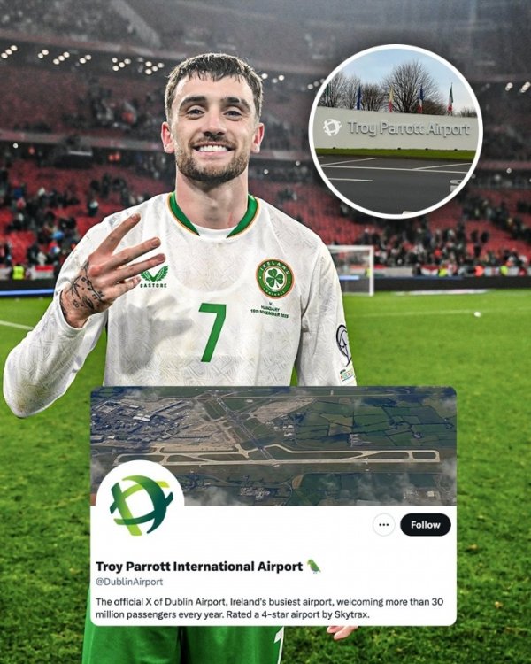 11月19日讯 此前畛域的世初赛F组末轮,爱尔兰凭借时尚帕洛特的帽子戏法+读秒绝杀慑服匈牙利,同期在积分榜上也反超敌手,得胜挺进世初赛附加赛,保留了晋级2026年好意思加墨宇宙杯的但愿。 【关系新闻↓】 天使下凡!帕洛特戴帽+补时读秒绝杀,爱尔兰挺进宇宙杯附加赛! 在爱尔兰临了3轮全胜,晋级附加赛的经过中,临了两场独进5球的时尚帕洛特无疑是最大元勋。对此,扩充国度队来迎去送任务的爱尔兰齐柏林机场开玩笑地将官方社媒称呼改为“特洛伊·帕洛特机场”,并连发多条动态庆祝: 理睬远征球......