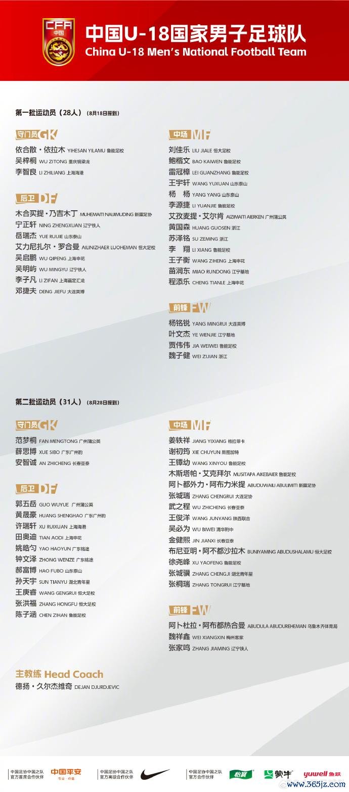 【联系新闻】U18国足集训名单:久尔杰维奇挂帅,魏祥鑫在列,张洪福归来