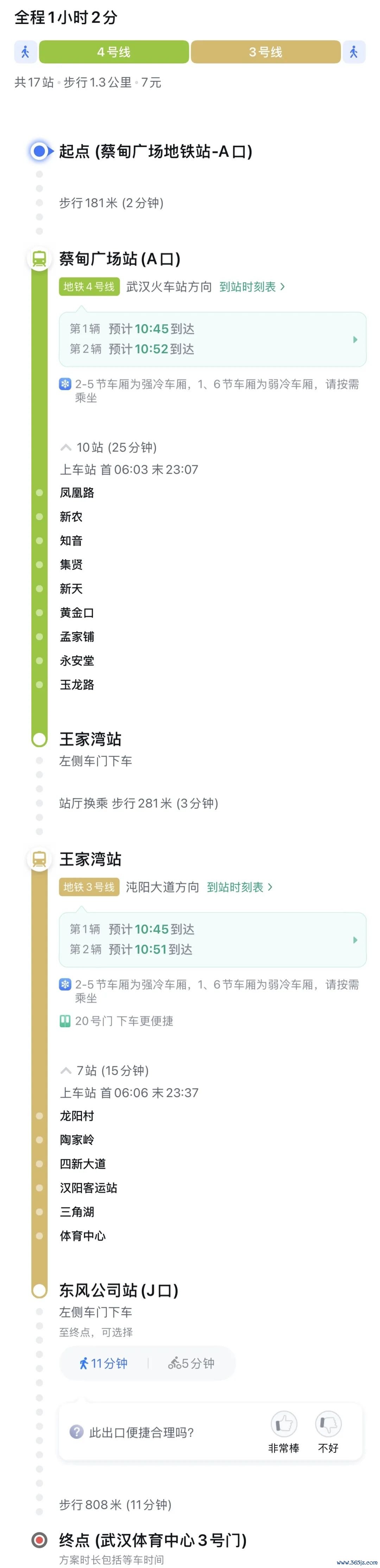 环球交通:乘坐轨说念交通4号线至王家湾站,转乘坐轨说念交通3号线至东风公司站,从J出口出站,随后步行至武汉体育中心3号门入场。