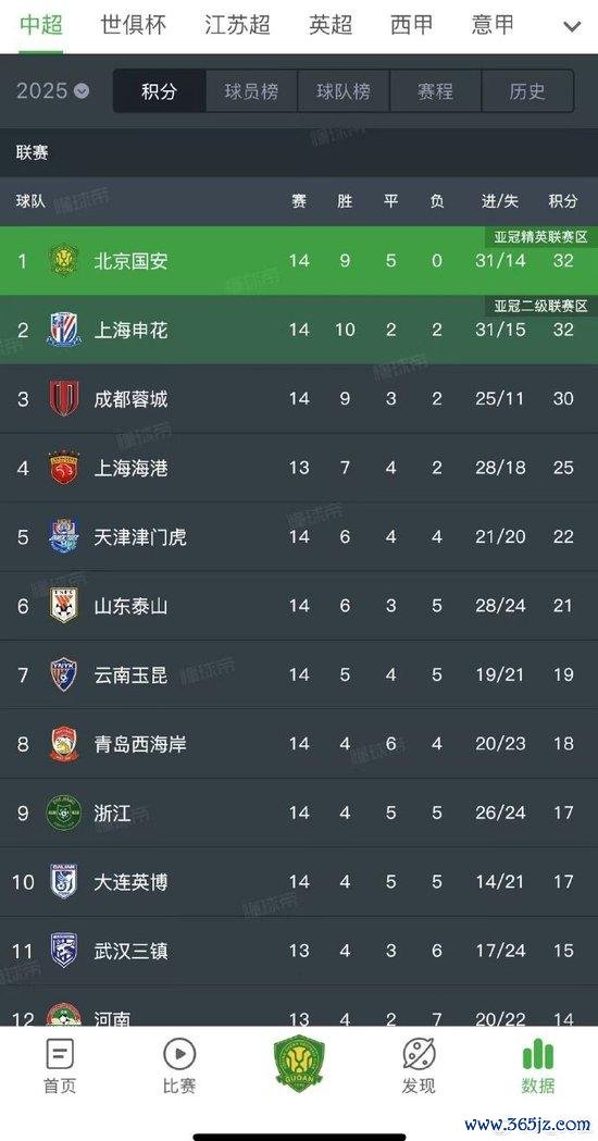 当今中超踢完14轮,北京国安、上海申花和成皆蓉城分列积分榜前三,积分别离是32、32分和30分。少赛一场的上海海港队暂积25分,但球队举座实力比较上赛季显然下滑,和前三名球队存在一定差距。