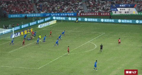 下半场,南通队很快就杀死了比赛的悬念。第54分钟,南通队左路挑传。队友送出传中,程鑫在禁区里策应抢点,推射平直,3-0!南通队险些提前拿下告捷。