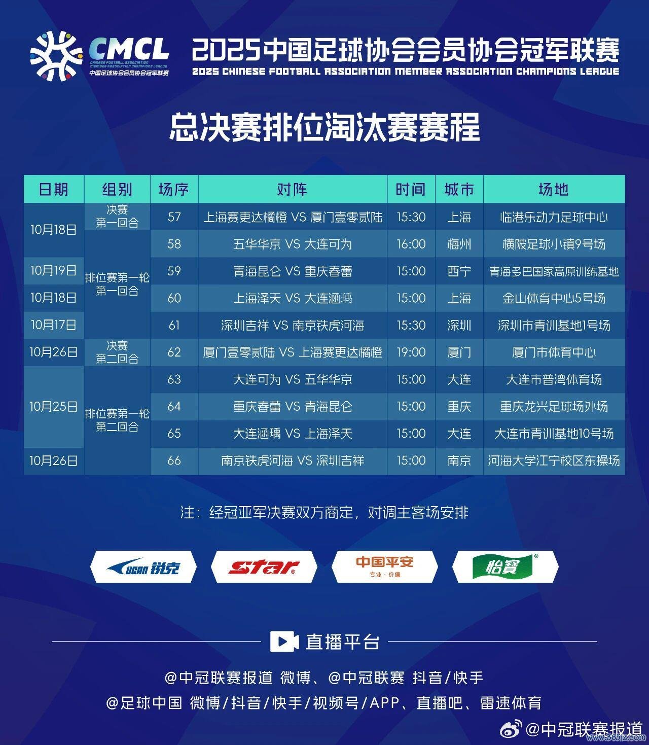 10月17日(星期五)至26日,2025中冠联赛总决赛将张开排位淘汰赛第一轮争夺。8支球队将交叉进行主客场两回合对决,胜出的4支球队不息捉对搏杀,争夺1.5张冲乙门票。
